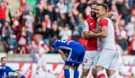 Slavia celebrate victory over Mladá Boleslav. Jaromír Zmrhal opened the score after 40 minutes and Milan Škoda added two in the second half. Goalkeeper Ondřej Kolář made several perfect saves to keep his second clean sheet in Slavia.
