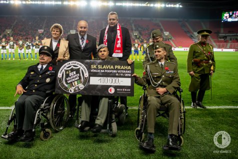Before the game both clubs honoured war veterans wearing special camo shirts (there was also military-themed fan zone in front of the stadium). Slavia Chairman of Board Mr. Jaroslav Tvrdík then presented a 100.000 CZK donation for REGI Base foundation helping Czech war veterans.