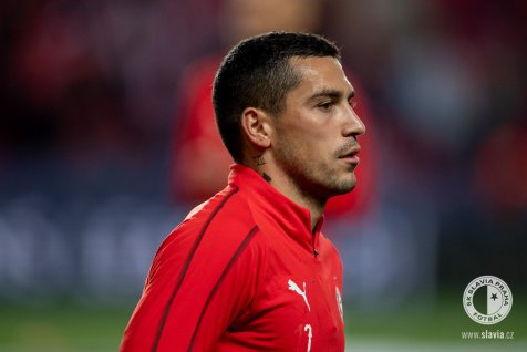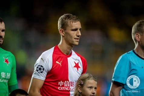 On 42nd minute Slavia were close to equalizer after a signal from set piece. From Ševčík through Masopust and Stanciu the ball got to Coufal on the right wing, his cross was deflected to Kúdela who had enough space inside the box, but his shot was blocked by one of the defenders.