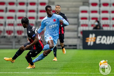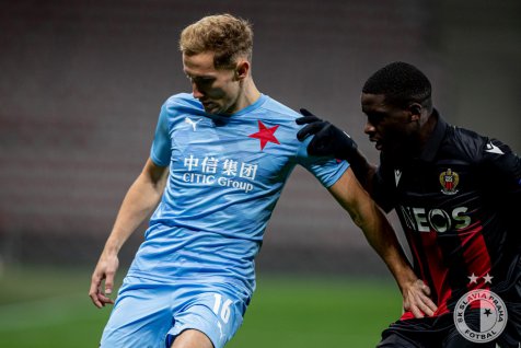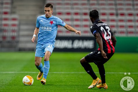 Both sides started the match actively but Slavia held the ball most of the time. The Red-whites also had the advantage of three corners in the first ten minutes, but Nice’s defenders were able to defend them.