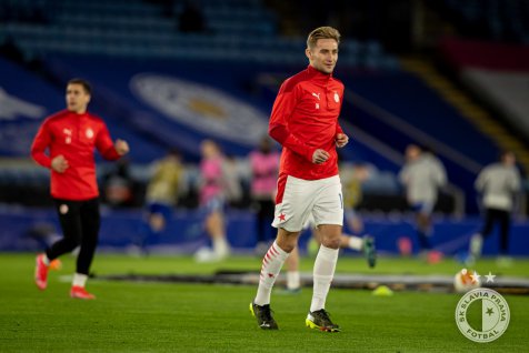 Slavia started the game very carefully and in the 19th minute Evans could shoot on the far post after the first Leicester corner, but his effort was directed only to Olayinka who managed to pass the ball back to safety for Koláø.