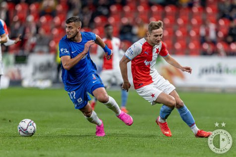 First big chance came after 19 minutes when Jan Matoušek got with the ball into Slavia penalty area and his good shot had t be saved by Ondřej Kolář.