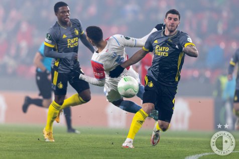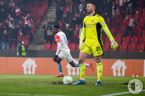 Slavia dominated the beginning of the second half and it paid off in the 62nd minute. Holeš tried it from long range right towards Marciano, but the Feyenoord goalkeeper only managed to knock the ball in front, where Kuchta brought it around him and finished calmly to make it 2:1 to Slavia.