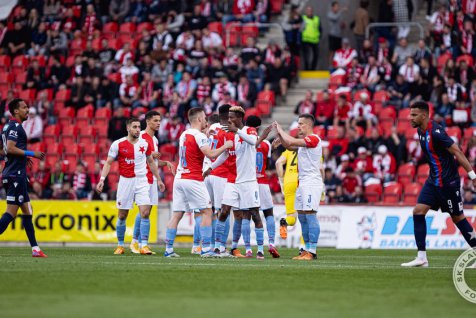 Giant Slavia chance came five minutes into the end after a set piece. Jurásek returned the ball on the far post and Olayinka had enough space to shoot, but his effort was blocked by Pernica. The ball rebounded to Kúdela who fired again from the edge of the box, but his shot was once again blocked by a defender standing on a goal line.