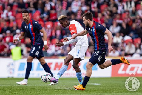 Two minutes later Traoré set up Tecl with a long through pass and our striker went alone on Staněk, the away goalkeeper tackled him, and the referee pointed to the spot. However, after VAR check the penalty was revoked as Staněk managed to block the ball before the contact.
