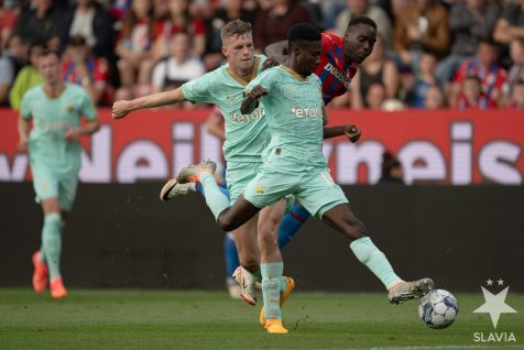 In the 44th minute, Lukáš Provod crossed the ball, and David Zima rose for a header but missed the target. Jedlička had more work to do in a scrum a few seconds later when he covered the ball from Conrad Wallem. This action concluded the goalless first half, with Christos Zafeiris replacing Provod for the second half. In the 51st minute, Vlček performed well defensively, clearing the ball from Souaré in the small penalty area just in time.