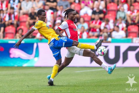 The referee added six minutes of stoppage time, but the match ended without further incident. The 18,021 spectators witnessed a hard-fought 2:1 victory for Slavia. Jindřich Trpišovský’s team now faces Lille in France on Tuesday in the first leg of the Champions League playoff.