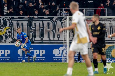 For the match at the Malsovicka Arena, Slavia wore black-and-gold jerseys, with Oscar returning to the starting lineup after a suspension. In the 2nd minute, Tomas Chory headed a cross from David Doudera, but Zadrazil made an impressive diving save. In the 21st minute, the Hradec goalkeeper stopped another header from Jan Boril, and Chory sent a third header wide.