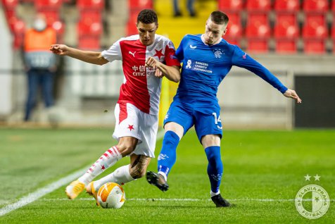 Peter Olayinka had to be substituted at halftime because of an injury. Lukáš Masopust took his place. The second half started better for Slavia as they were the better team again. The Red-whites attack Rangers’ defence a lot but they could not turn any of their chances to goalscoring opportunities.