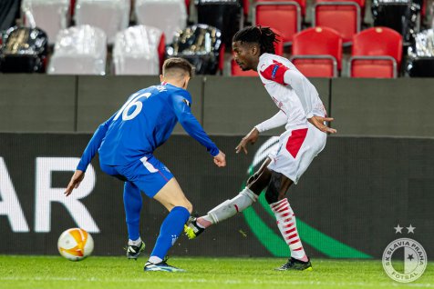 In the 71st minute, Slavia had the opportunity to double their lead. Lukáš Provod’s corner kick to the far post was headed to the near post by Ondřej Kúdela but Aribo blocked it on the goal line.