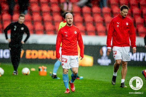 Slavia started with 7 changes in compare to Europa league game in Sevilla on Thursday. Milan Škoda returned as lone striker, Hušbauer, Olayinka and Baluta started in midfield and Frydrych, Ngadeu and Zelený in defence. Goalkeeper Kolář, Stoch and Souček in midfield and Kúdela in defence were the only ones to remain for both games.