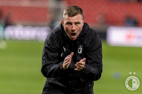 Manager Jindřich Trpišovský made six changes in comparison with the Sunday’s match against Sparta. Aleš Mandous started in goal, Tomáš Holeš played alongside Aiham Ousou in centre defence. Srdjan Plavšić replaced David Jurásek on left side of defence. Mads Madsen and Maksym Taloverov started in midfield. Adam Pudil made his debut in the starting eleven as he substituted Ivan Schranz on right side of midfield.