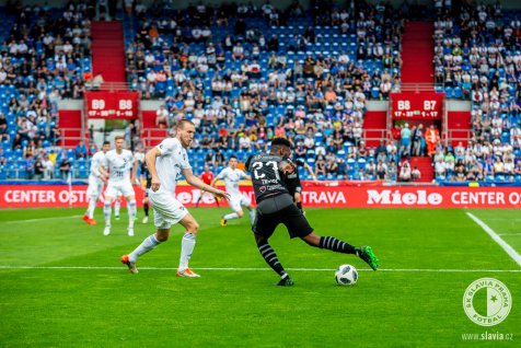 After an equal beginning Slavia got into their first chance after 10 minutes, but goalkeeper Laštůvka blocked Souček’s header after a corner by Hušbauer. Just 3 minutes later Hušbauer sent another through pass to Traoré who fired the ball wide from good position on the left side of the box.