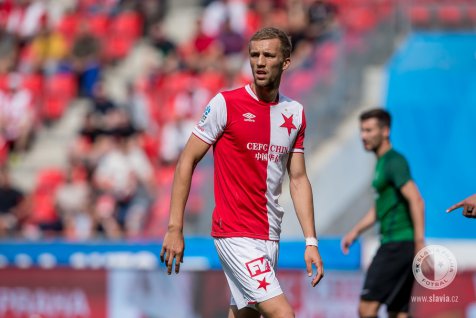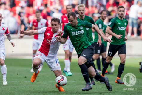 Third time in a row Slavia started with the same line-up with Stanislav Tecl as a lone striker. And they could take lead just 4 minutes into the game when Zmrhal headed the ball to Frydrych, but our right back was denied by goalkeeper Hrubý with his shot from the brink of the box.