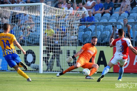 Opening minutes saw an equal game. Zelený fired in first Slavia chance 7 minutes into the game but missed the post, Simerský tried his luck on the other side, but with similar outcome.