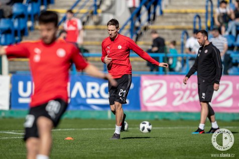 Slavia started better and could open the score just 5 minutes into the game, but Baluta’s effort was blocked by Zlín goalkeeper Rakovan and his rebound aimed high above crossbar. On 21st minute Souček headed the ball after Hušbauer’s cross but Rakovan was on his position again to block his effort.