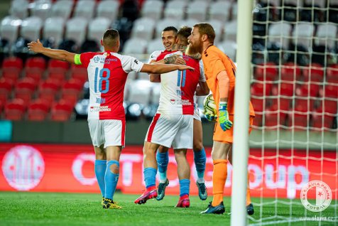 The red and whites could celebrate in 21st minute. Tecl latched onto a pass inside the box, was tackled by Jeřábek and the referee pointed to the spot. Nico Stanciu converted the penalty and Slavia took lead.