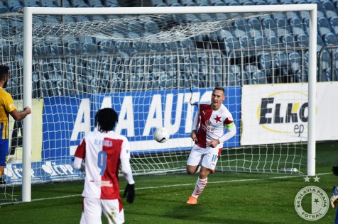 Opava started the game better and set the pace for opening 10 minutes, but Slavia managed to equal the game and took the wheel of the game soon. After 12 minutes Zima deflected Stanciu’s corner to Traoré who was denied by Fendrich in the first big chance of the game. In 34th minute the same situation repeated, Zima prolonged Stanciu’s cross this time to Kúdela and our centre-back headed the ball in on the far post. Slavia took deserved lead.