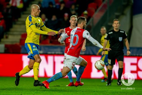 Slavia started better and set the pace of the game in opening 30 minutes. After 15 minutes captain Škoda tried to lob Teplice goalkeeper, but Grigar managed to block his effort over the crossbar. Just few minutes later Škoda tried his luck with stunning bicycle kick from inside the penalty area only to hit woodwork.