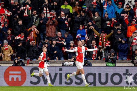 In the sold-out Eden Stadium, Slavia created the first chance when Tom?? Hole? shot over the bar from distance. The next opportunity resulted in a goal as Tom?? Chor? netted a cross from Luk?? Provod on the left in the 7th minute, giving Slavia a 1?0 lead.