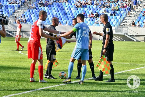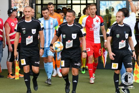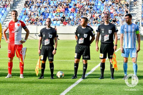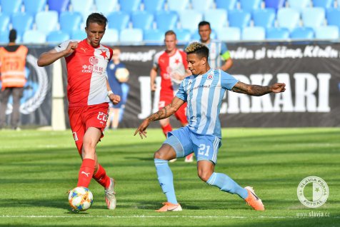 Therefore, it was Slovan who scored first. Slavia defence managed to stop the quick counter-attack, but the ball got to Moha after an unsuccessful clearance and Slovan winger opened the score. 1-0.
