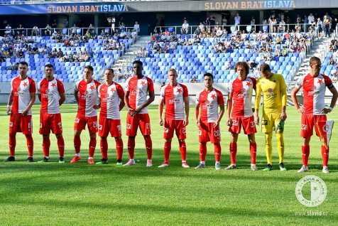 In Bratislava Slavia could use several players returning from national duties – Král, Bořil, Coufal, Souček and Masopust – and it was the teamwork of the last two mentioned which could secure first goal for the red-whites. Souček sent a long cross to Masopust who had enough space to advance on goal, but one of returning Slovan defenders eventually blocked his effort.