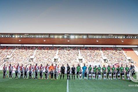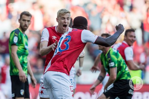 Just a few seconds after the kick-off Miroslav Stoch finished Slavia attack with a dangerous shot from behind the box but fired the ball over the crossbar. The game started in a decent pace and Ondřej Kolář soon needed to be in action following a free kick by Viktoria.