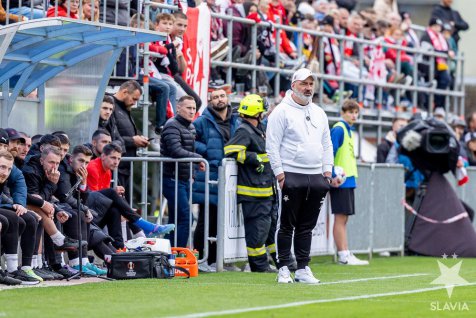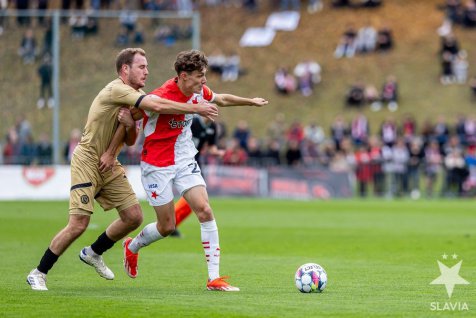 Making their competitive debuts in the red-and-white starting lineup were Mikulas Konecny and Jan Tredl, while Igoh Ogbu returned from injury, captaining the team with a protective face mask. Before the game, the home side honored Slavia?s fitness coach Martin Trasak, who played 79 games over five seasons for Benatky, helping them achieve promotion to the division.