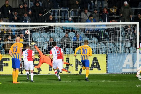 Despite Slavia pressure Opava found a way back into the game very quickly. Zapalač burst into the penalty area, was tackled by Jan Bořil and the referee pointed to the spot without any hesitation. Pavel Zavadil gave no chance to Slavia keeper and levelled the score on 38th minute.