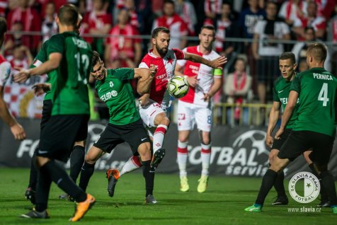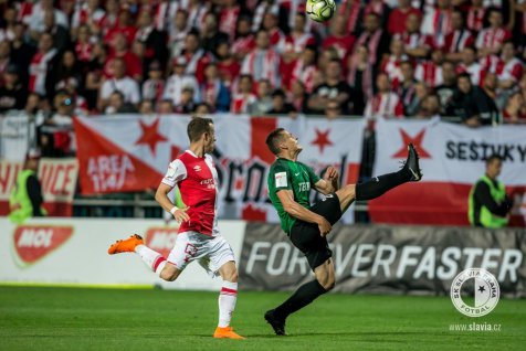Slavia had several blocked shots during the second half still defending a narrow lead and the guests had their only two chances shortly before the 80th minute. Pernica’s header was deflected by Ngadeu abve the crossbar and following a corner Zelený headed the ball just a few centimetres above the crossbar again.