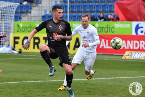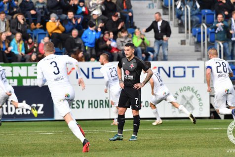 In 22nd minute Stanciu fired from behind the box in Trmal’s hands, but it was Slovácko who took lead two minutes later. Navrátil sent sharp cross from left wing to Zajíc and Kolář had to perform great save against the home forward, but Slavia defence could not clear the ball, it rebounded to Milan Petržela and he sent it into an open net.
