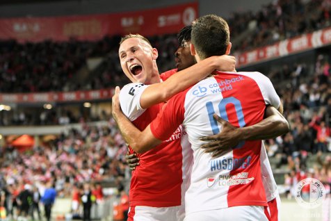 But Slavia – led by captain Milan Škoda who scored 4 in the previous MOL Cup game against Vyšehrad and supported by more than 18 thousand fans in Eden – set the pace in the opening minutes. After 14 minutes and several opportunities Lukáš Masopust crossed the ball from the right wing, his pass was deflected to Peter Olayinka and Nigerian striker smashed it into the net. After Inter and Sparta Olayinka was thus involved in third goal in last 3 games.