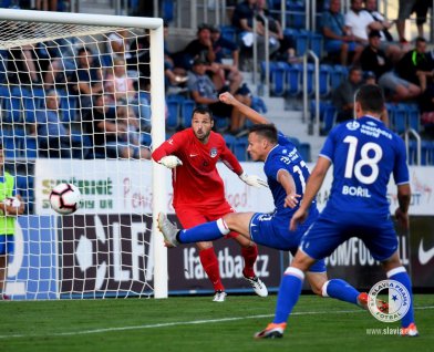 The home team could answer with Daníček’ chance but Bořil blocked his first attempt and the other one was aimed aver the crossbar. On the other side Tecl could add third for Slavia but Daněk denied him face-to-face this time.