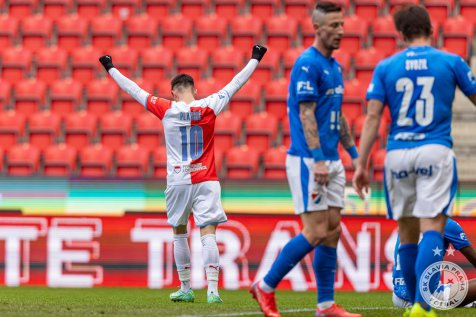 Slavia made two changes early into the second half – Oscar and Taloverov replaced Plavšić and Kacharaba – and seven new players came on the pitch after an hour of the play including youngsters Prebsl and Višinský, striker Stanislav Tecl and ex-Baník Yira Sor who made his maiden start in red and white.